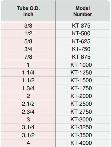 Suffix model number with tube gauge and shank when ordering. Example for 3/4” O.D. 16G, 06 shank, model number will be KT-750-16-06.