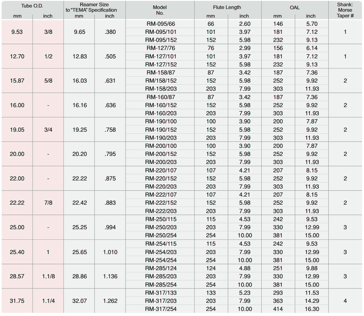 Reamers available in MM sizes also.