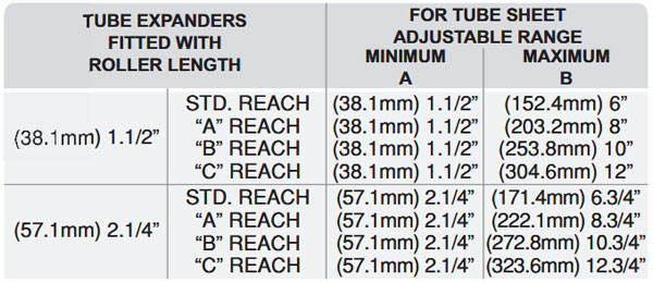 Most popular tool worldwide for heat exchangers and condensers with tubes of 5/8”-1.1/2” O.D. and thick tube sheets.