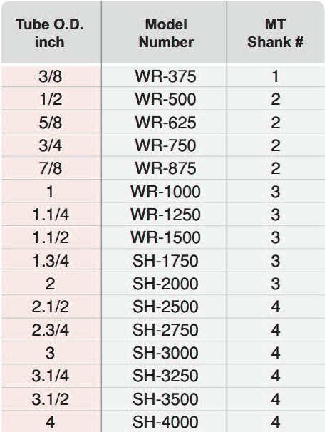 Suffix model number with tube gauge when ordering. Example for 3/4”O.D. 16G, model number will be WR-750-16.